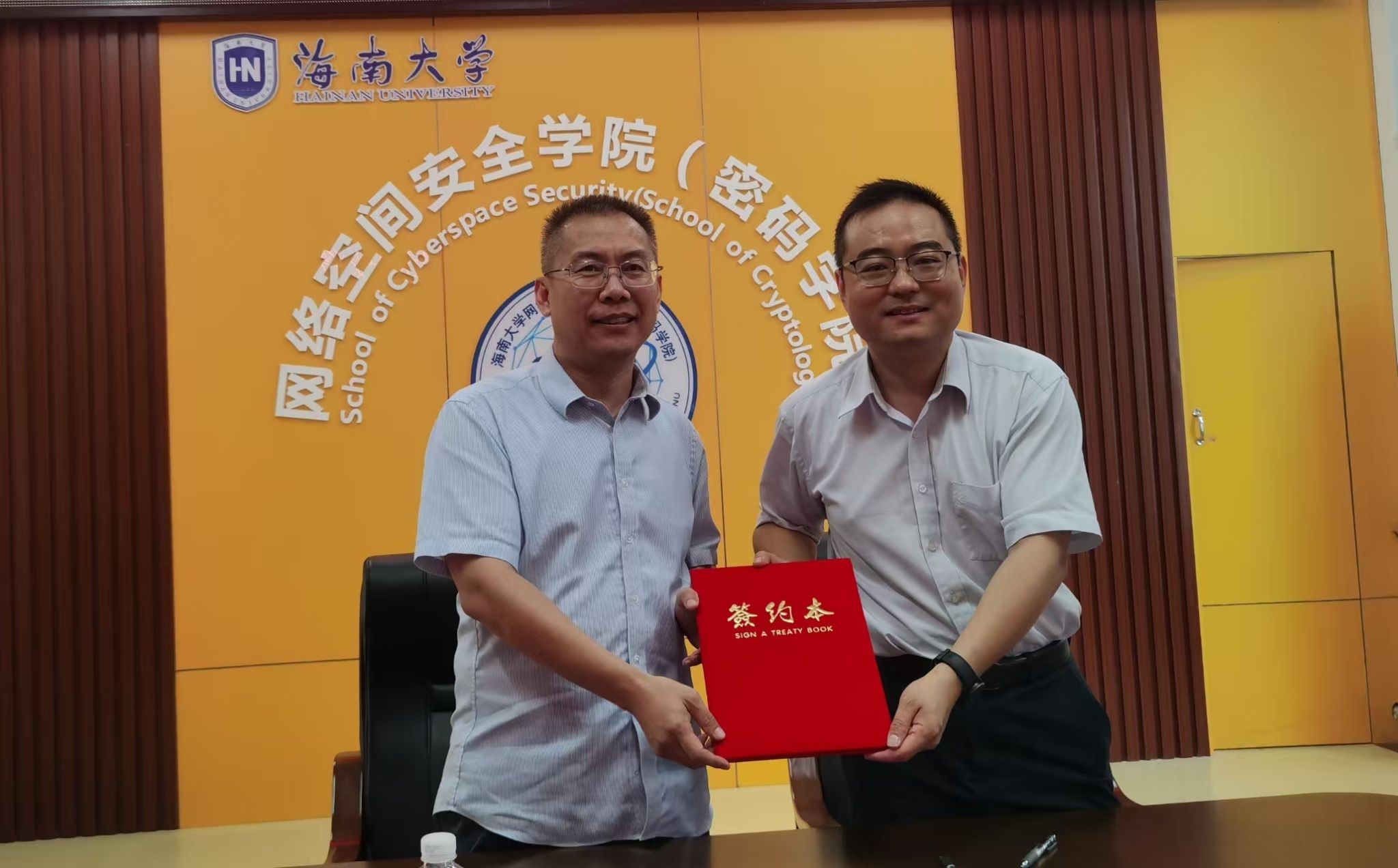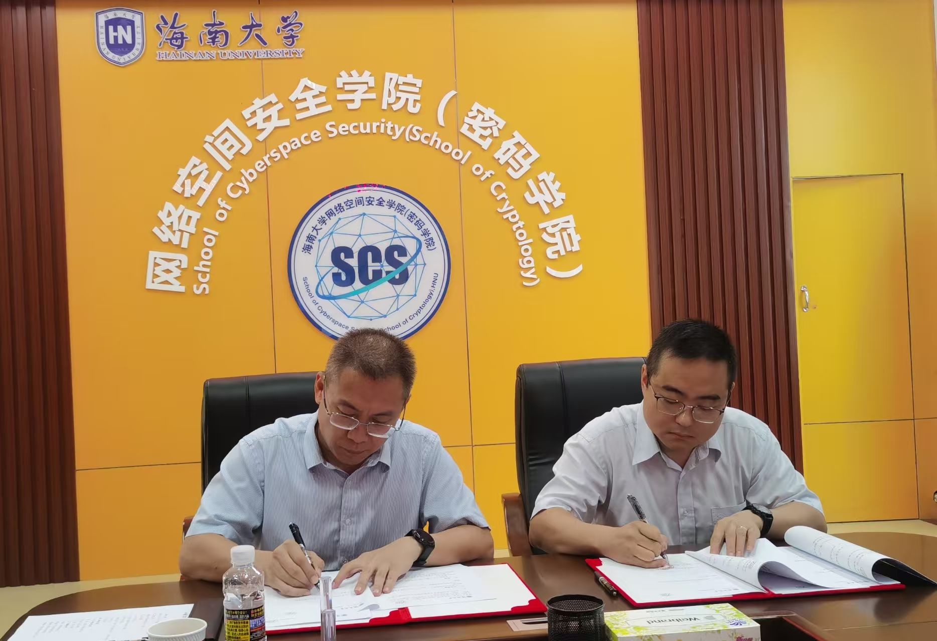 会上,双方围绕平台建设、科研合作以及海南大学“天地一体化网络安全”一流学科突破计划项目等议题展开深入交流。同时曹春杰院长与李杨主任代表双方签署了合作备忘录,双方将建立长期稳定的合作机制,在科技创新、人才培养、技术成果转化等方面开展深度合作。